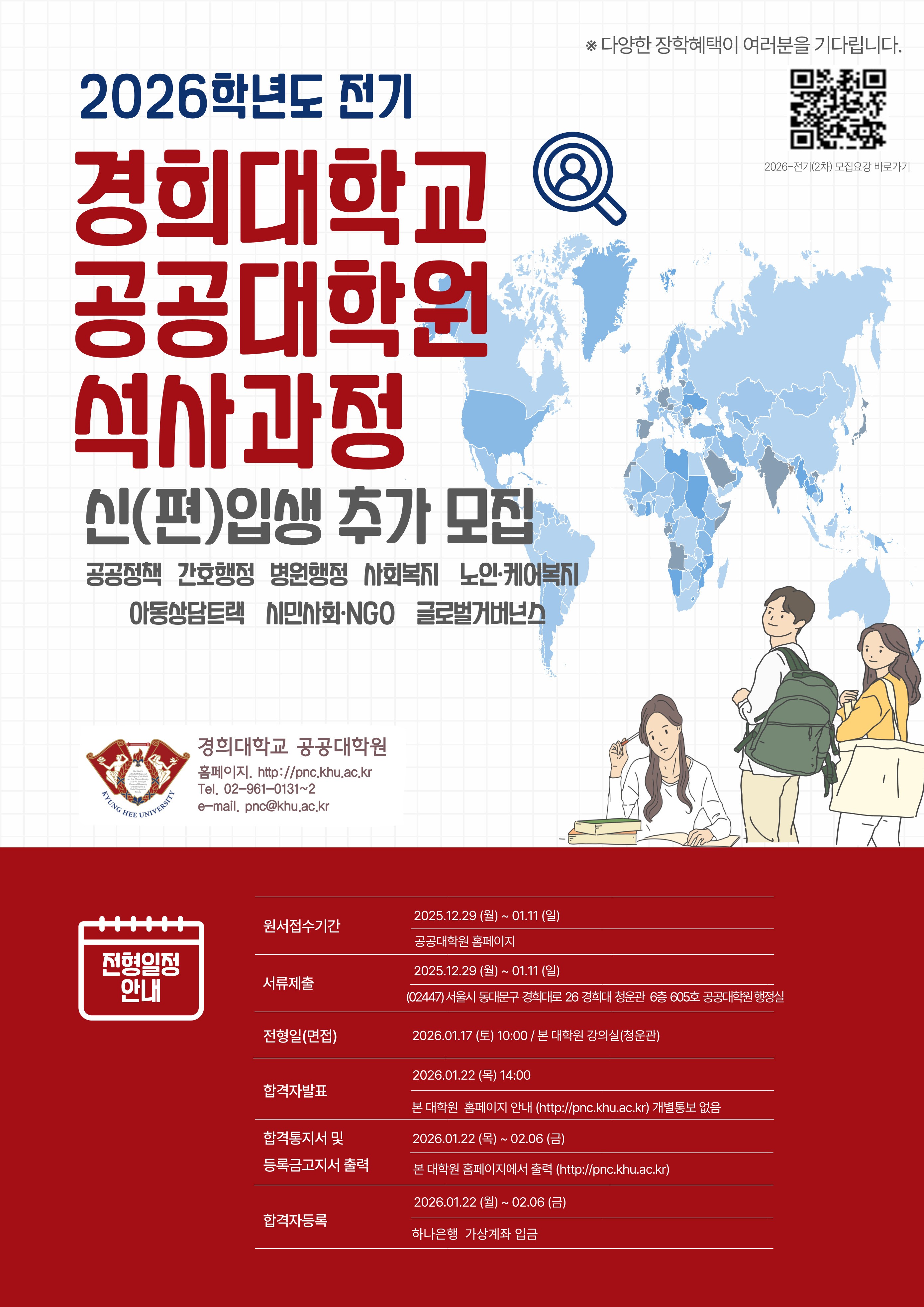 2026학년도 전기 경희대학교 공공대학원 석사과정 신(편)입생 추가모집 홍보